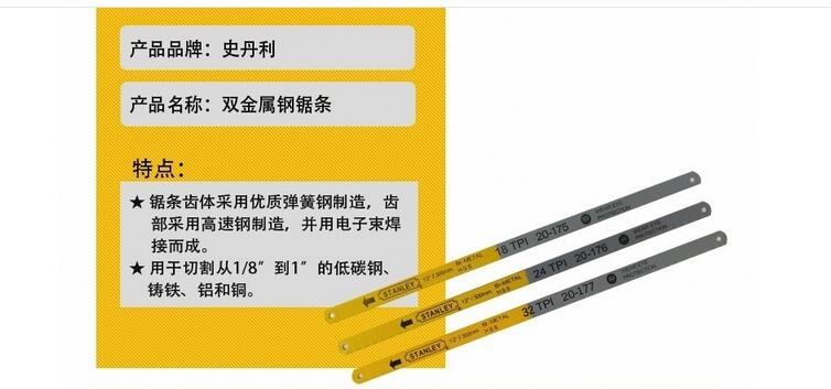 正品STANLEY/史丹利20-175-23雙金屬鋼鋸條18齒 可鋸/鋼/銅/鐵/鋁 12寸-24TX1片