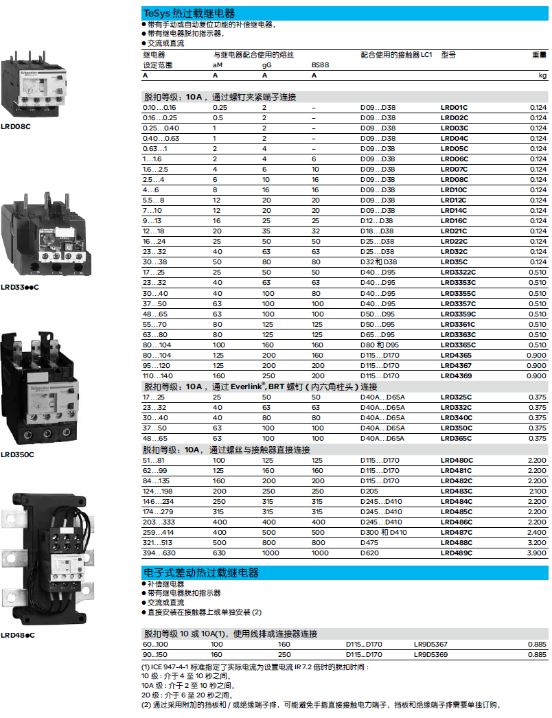 應用:工業控制、能源及基礎設施、建筑等;標準的電動機保護 ;線路保護;電動機過載保護、電動機堵轉及缺相保護;TeSys LR.D 熱過載繼電器