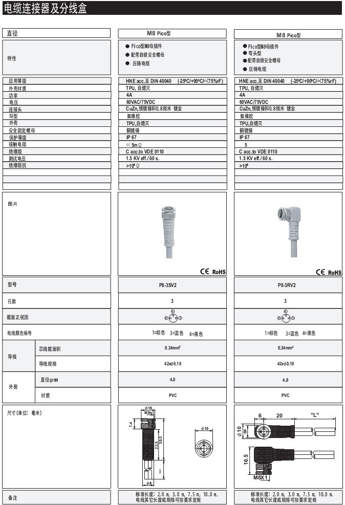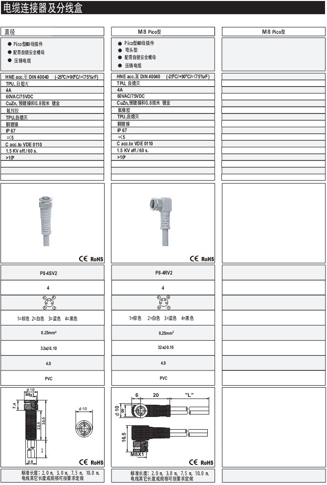 M8Pico型 -- -- PVC -- 出線式 電纜連接器及分線盒