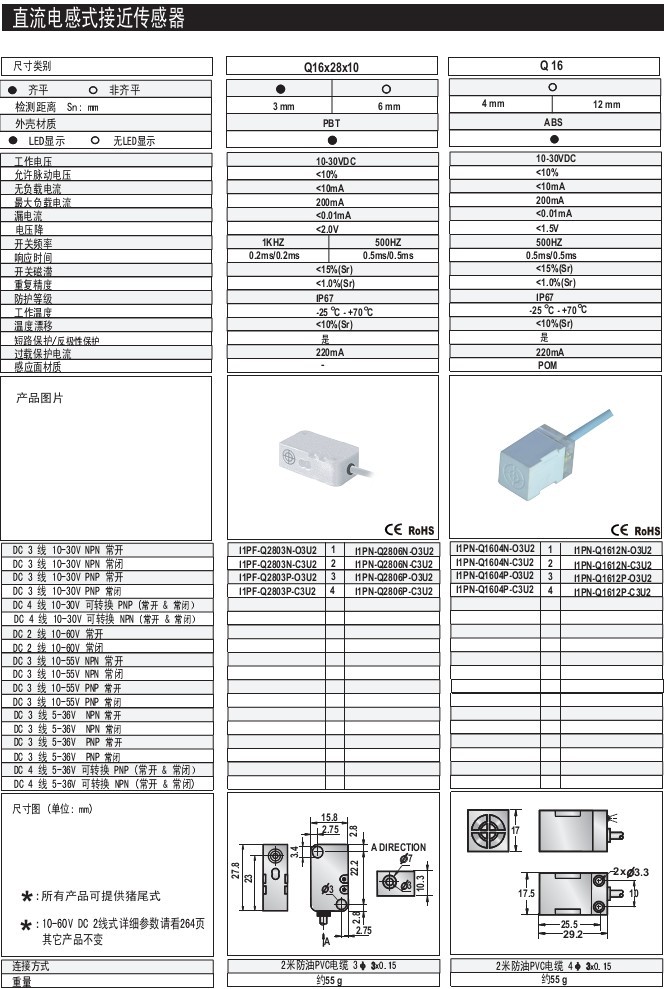 Q28 6mm 齊平/非齊平 PBT 標準型 出線式 直流電感式接近傳感器