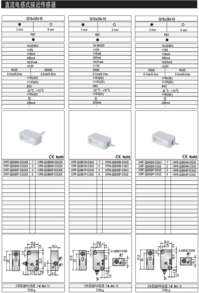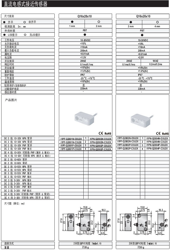 Q28 1mm 齊平/非齊平 PBT 標準型 出線式 直流電感式接近傳感器