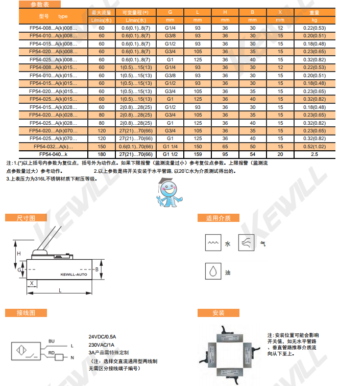 其特點是:極小的壓力損失、良好的重復性及抗污能力,機械部分與電子部分完全隔離,適用于小流量經濟型。3倍于原FP50的活塞行程使設定精度更加精確。帶有開關設定刻度,用戶無需在現場設定。LED顯示開關狀態。