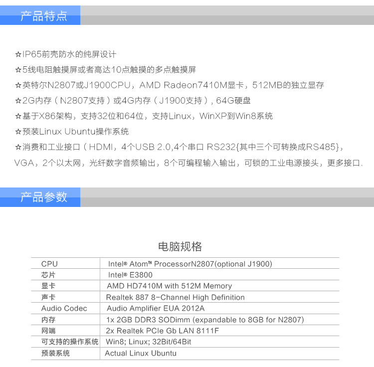 控匯10.1英寸 IP65 無風扇設計工業觸摸電腦