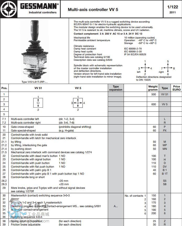 德國杰斯曼VV5單軸手柄控制器 優勢銷售