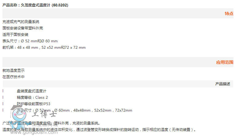 JUMO久茂度盤式溫度計(jì)(60.8202)