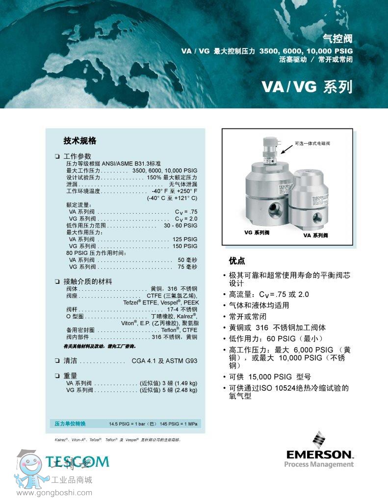 TESCOM調(diào)壓閥 閥門VA / VG 系列-艾默生EMERSON TESCOM