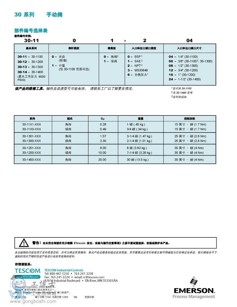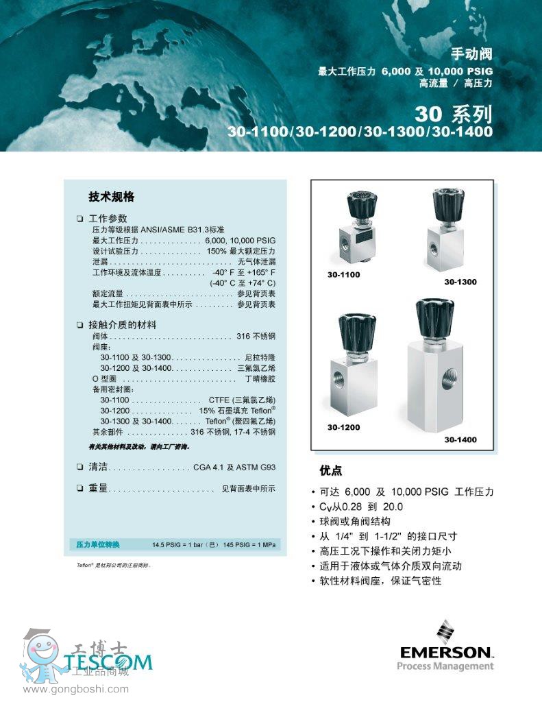 TESCOM調(diào)壓閥 手動閥門30系列-艾默生EMERSON TESCOM