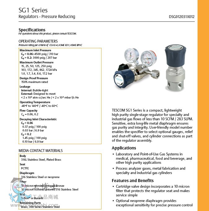 TESCOM 調壓閥 SG1 系列承接進口調節閥的維修服務