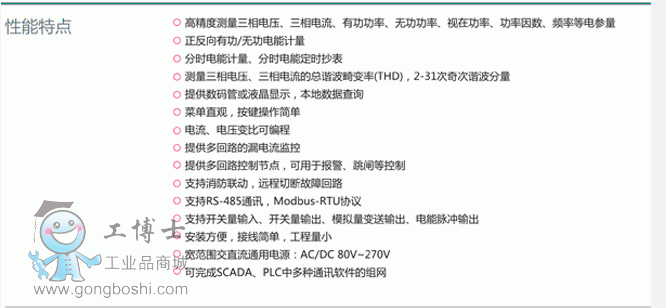 可以計量正向有功,無功,反向有功,無功電量,四相限無功及*大需量等計量數據精確測量A,B,C各相的電壓,電流,有功功率,無功功率等參數。