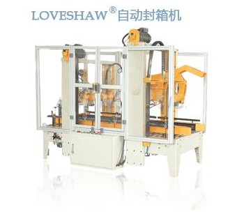 該側帶式全自動封箱可機自動折疊頂部,自動調整封箱的高度和寬度,適合接駁全自動生產線