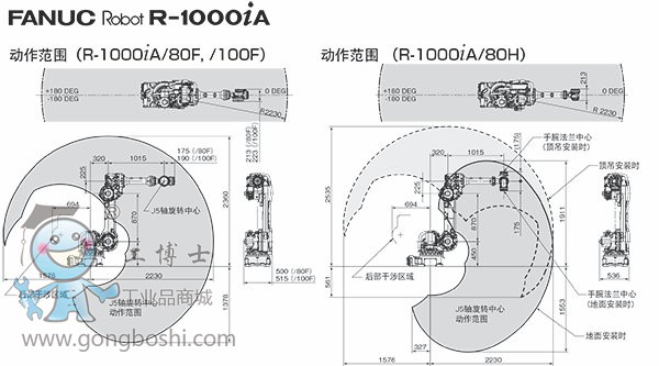 通過對垂直多關節結構進行幾近**的*優化設計,使R-2000iB在保持*大的動作范圍和可搬運質量的同時,大幅減輕了自身重量,并實現了緊湊的機身設計。