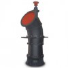 HD型泵采用立式結(jié)構(gòu),配用立式電動(dòng)機(jī)。按葉片調(diào)節(jié)的可能性,分為固定式、半調(diào)節(jié)式。固定式的葉片和輪轂鑄成一體,葉片角度不能改變;半調(diào)節(jié)式的則在需要改變工況時(shí),松開(kāi)螺母,拆出定位銷(xiāo),轉(zhuǎn)動(dòng)葉片,使葉片的基準(zhǔn)線對(duì)準(zhǔn)輪轂體上的某一要求的角度線,然后裝好定位銷(xiāo),擰緊螺母,從而達(dá)到調(diào)節(jié)的目的。泵出廠時(shí),如無(wú)特殊說(shuō)明,葉片安裝角度均為零度,用戶可根據(jù)需要,按泵工作性能表,自行調(diào)整。