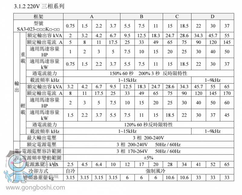產(chǎn)品簡規(guī): 高性能向量型 SA3系列變頻器