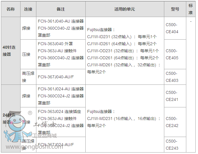 Fujitsu連接器(32點(diǎn)輸入、32點(diǎn)輸出、64點(diǎn)輸入、64點(diǎn)輸出、32點(diǎn)輸入/32點(diǎn)輸出和16點(diǎn)輸入/16點(diǎn)輸出單元)
