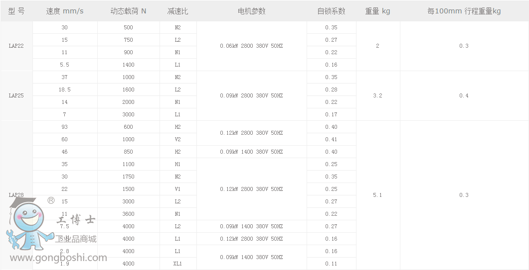 LAP梯形絲杠力姆泰克電動推桿 內含長壽命潤滑脂 免維護