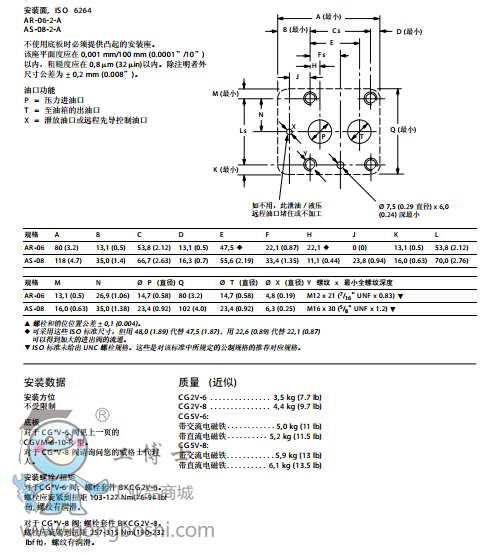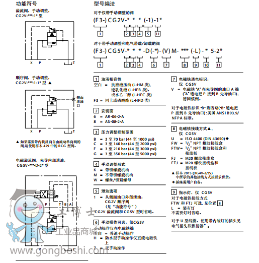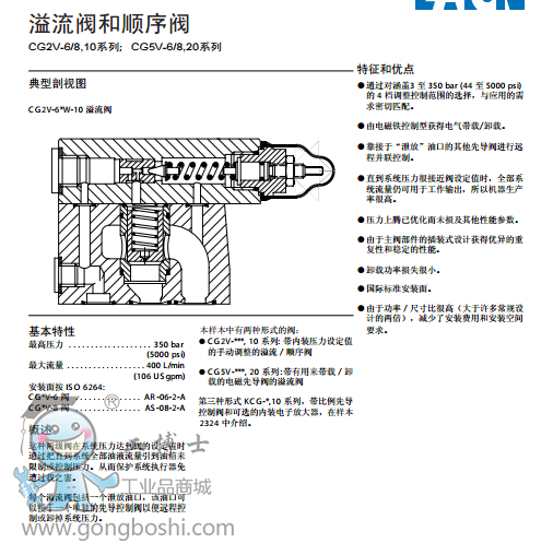 威格士vickers壓力控制閥板式安裝CG2V-6/8, 10 系列;CG5V-6/8, 20 系列