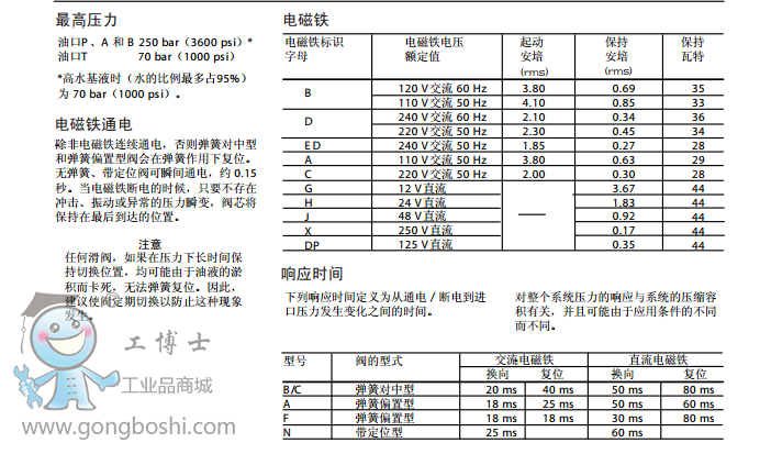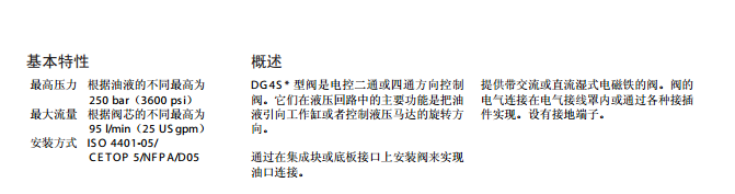 威格士vickers方向控制閥DG4S*-01-60, 濕式電磁方向控制閥
