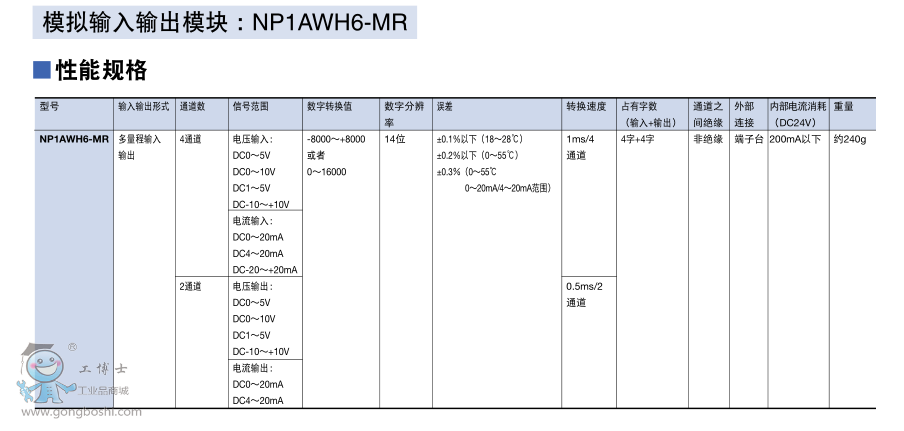 富士PLC模擬輸入模塊:NP1AXH8VG-MR
