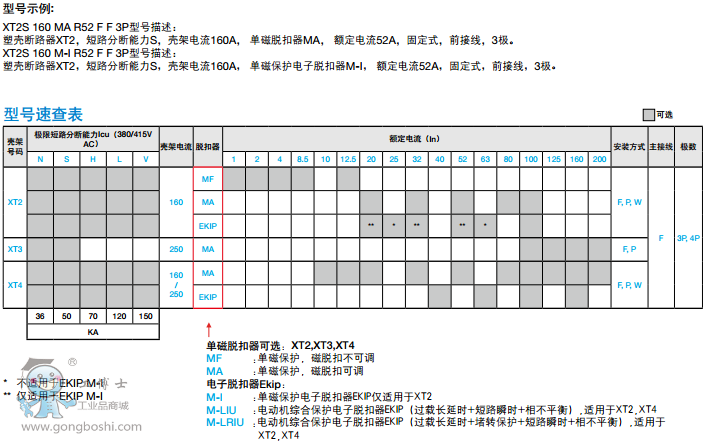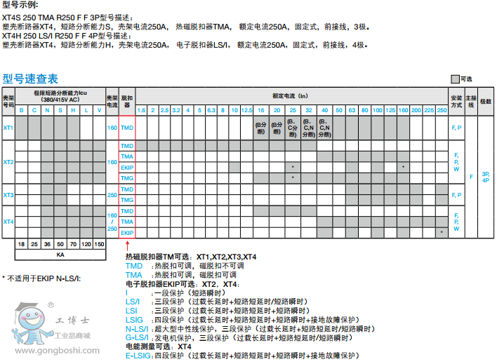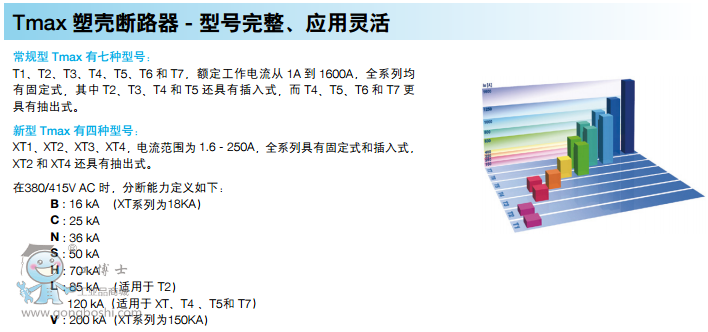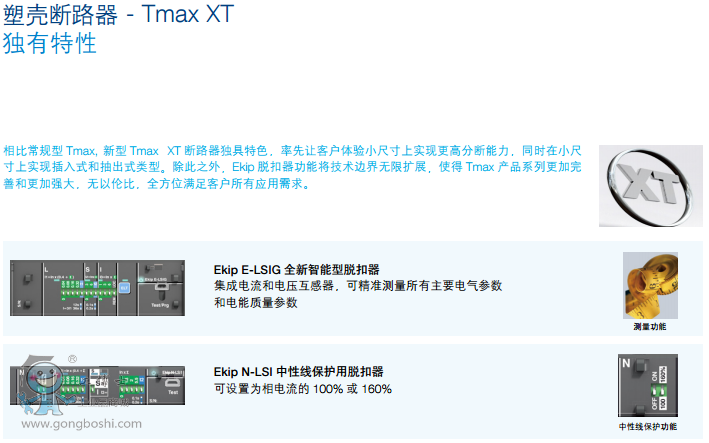 Tmax XT塑殼斷路器在做到尺寸更小、易于安裝且安全性更高的同時,還確保了極高的性能水平。該系列具有四種框架尺寸:額定電流高達160A的XT1、XT2,以及額定電流高達250A的XT3、XT4。