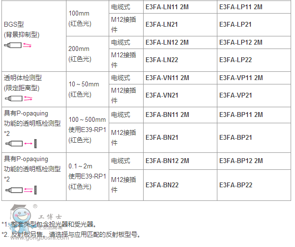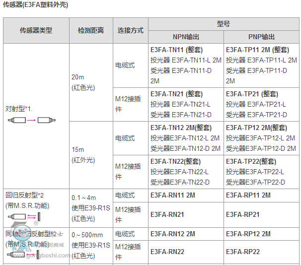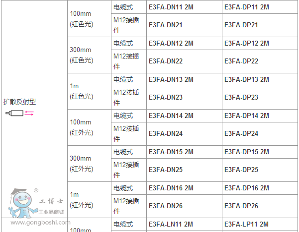 歐姆龍圓柱型光電傳感器:E3FA / E3RA / E3FB