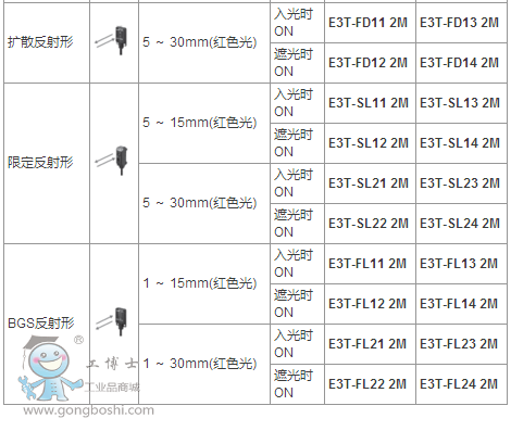 本公司備有對射型長距離2m型(E3T-ST3□)