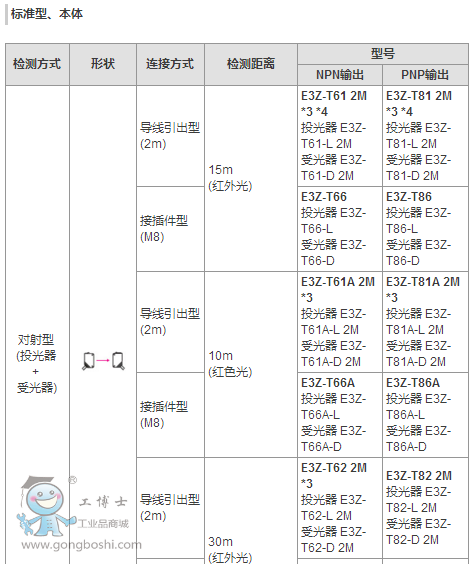 還備有檢測距離30m (響應時間2ms)的長距離對射型。