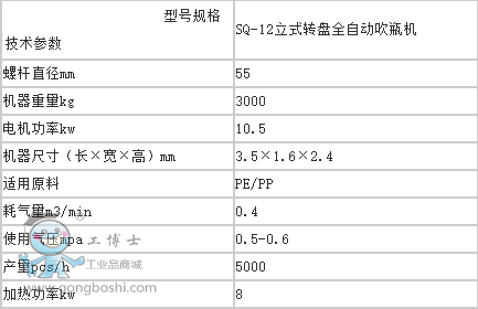 本機為十工位立式轉盤,主要適合于吹制各種軟管產品:如棒棒冰、炸藥筒、花盆營養缽、眼藥水、果凍等產品。該機自動上料、自動切口、自動去尾、自動理瓶,完全實現了自動化生產,徹底解決了人工難的問題。日產量:12萬瓶
