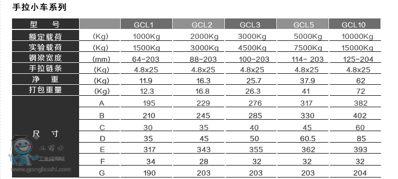 GCL型手拉單軌小車以手鏈驅動,行走于工字鋼的軌道下緣處,配以手拉葫蘆便可組成橋式、單梁或懸臂式起重機。單軌小車廣泛地適用于工廠、礦山、碼頭、倉庫、建筑工地等,單軌小車用于安裝機器設備,吊運貨物的場合,單軌小車尤其適用于無電源地點的作業。