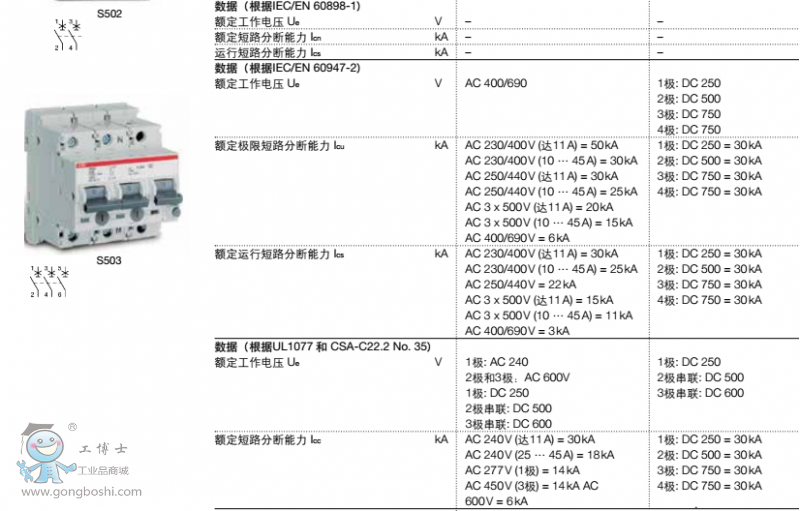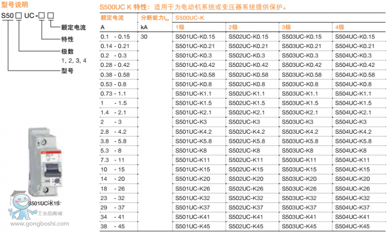 ABB微型斷路器 S503UC-K2