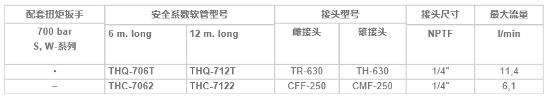Enerpac恩派克 THC,THQ 系列液壓扳手用油管