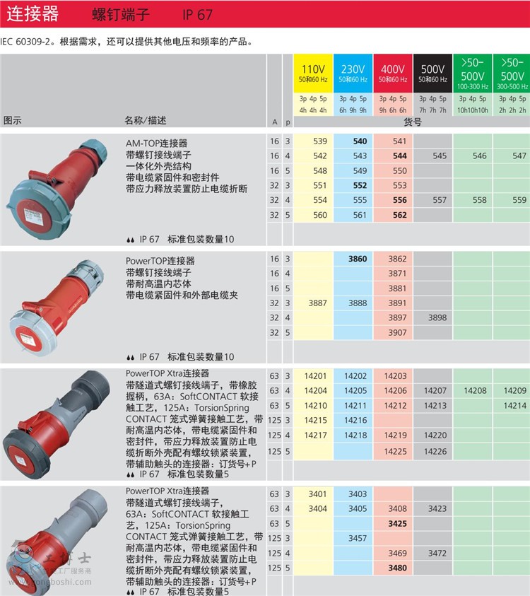德國曼奈柯斯TYP:3457 3芯125A 230V工業(yè)連接器IP67