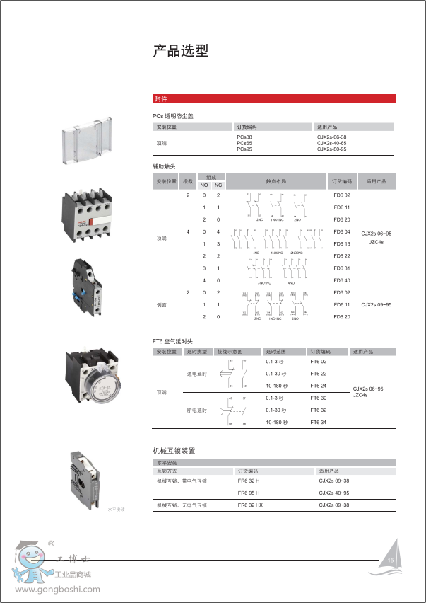 附件:PCs透明防塵蓋、FD6頂輔助觸頭組、FC6側(cè)輔助觸頭、FT6空氣延時(shí)頭、FR6機(jī)械連鎖、FS浪涌抑制器(不占任何的安裝空間,能有效的保護(hù)接觸器的線圈)
