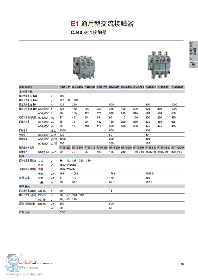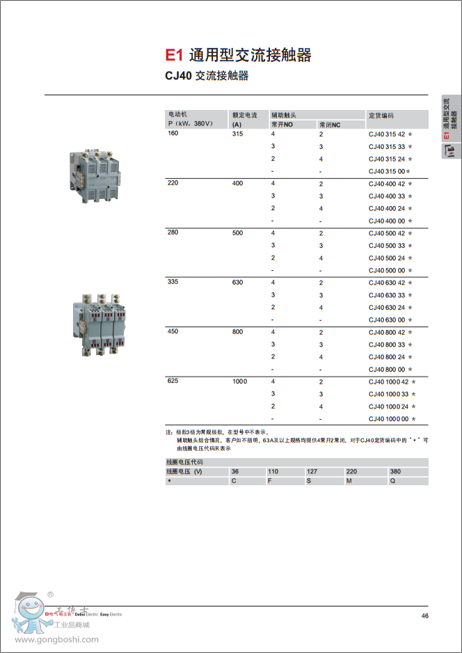 適用于交流50HZ,額定工作電壓至660V,額定工作電流至1000A的電力系統中接通和分斷電路,并與適當的熱繼電器或電子式保