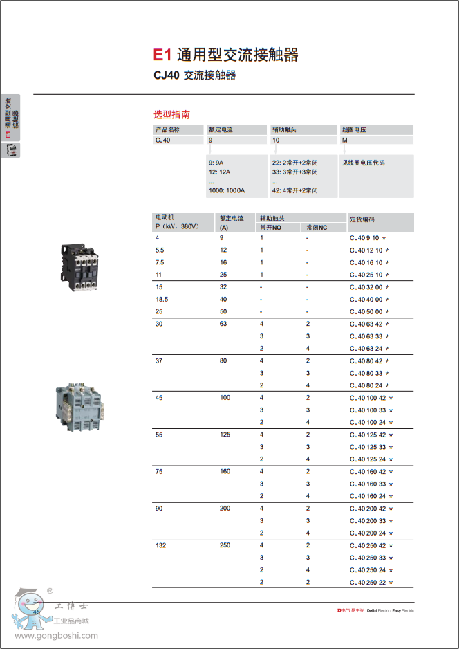 Delixi德力西CJ40系列CJ40-9-10 AC220V交流接觸器