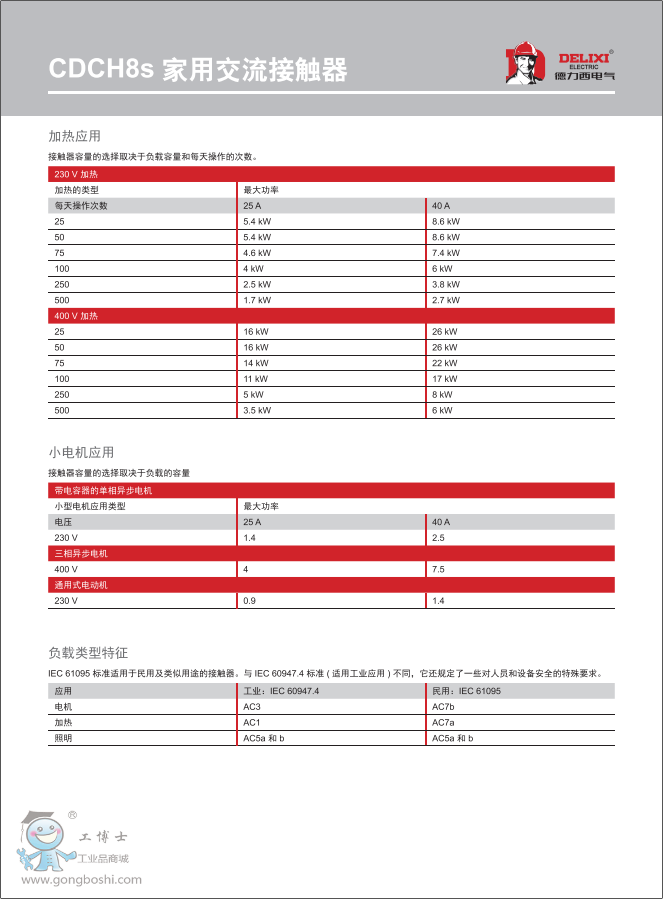 適用于交流50HZ,額定工作電壓至230V,使用類別AC-7a時,工作電流至25A,使用類別AC-7b時,工作電流至63A,額定限制短路電流不超過6KA的電路中,作遠距離接通和分斷電路之用。