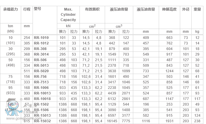 Enerpac恩派克 RR-系列,雙作用液壓油缸