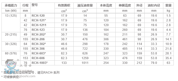 對于20噸以上的型號,使用鍍鎳的浮動中心管增加產品壽命