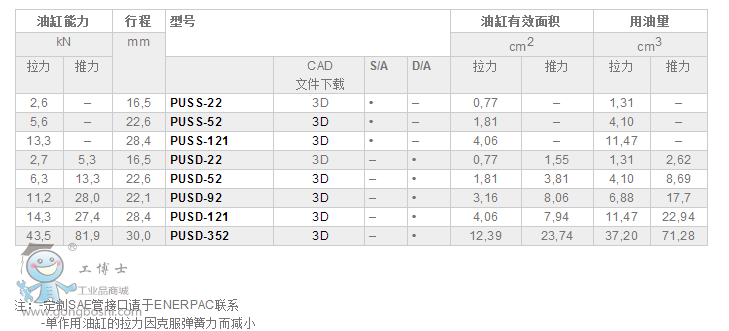Enerpac恩派克 PU-系列,拉力油缸-上法蘭式