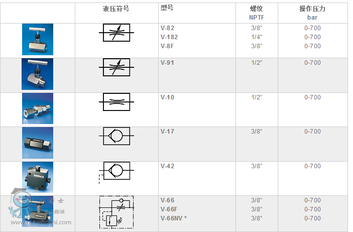 所有閥的額定工作壓力均為700bar