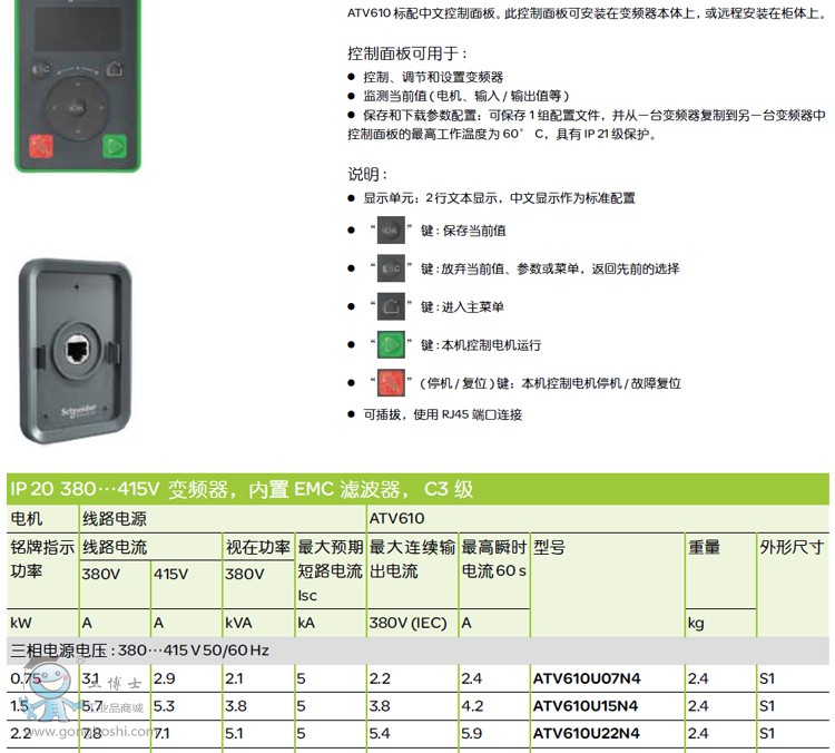 施耐德水泵專用ATV610U30N4三相380/415V 3KW價格 |