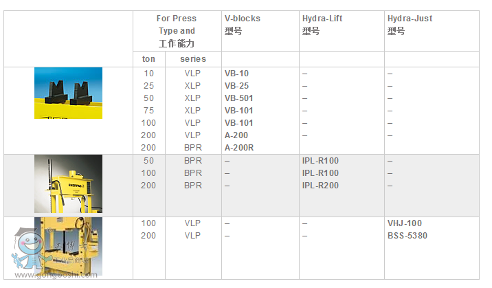 Enerpac恩派克 VLP、XLP、BPR-系列,壓床附件