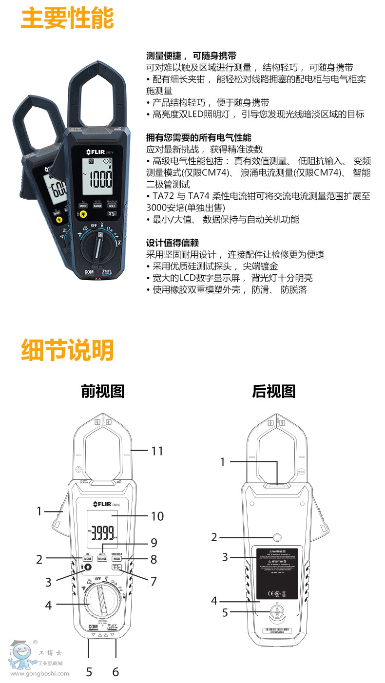 FLIR 菲力爾 數字鉗形表 CM74數字鉗形表 AC/DC