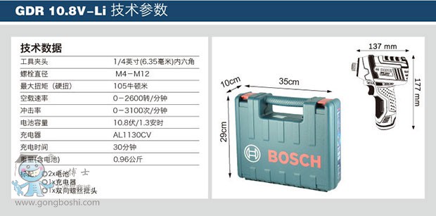 博世(BOSCH )GDR10.8-LI 10.8V鋰電池充電式沖擊起子機 專業型