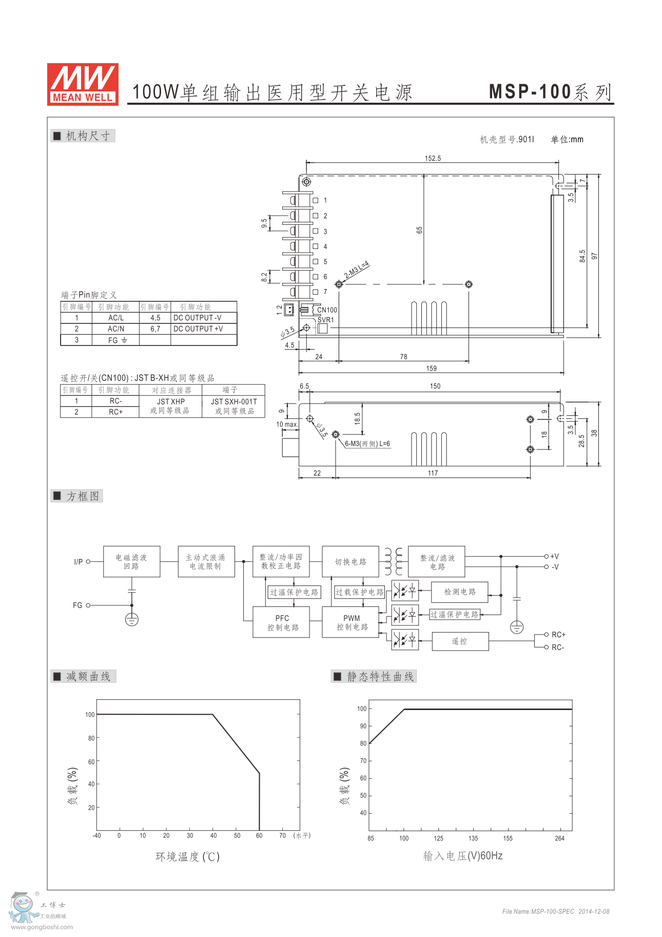 明緯MSP-100-12 100W單組輸出醫用型開關電源 MSP系列