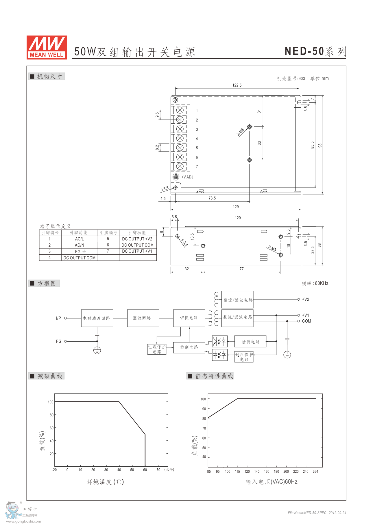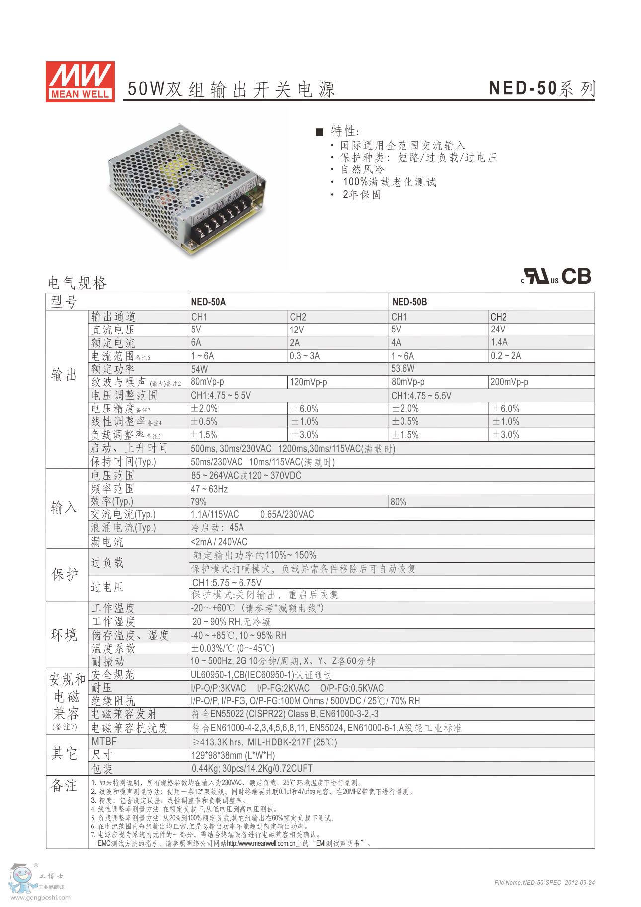 明緯開關電源NED-50A 50W雙組輸出 NE系列