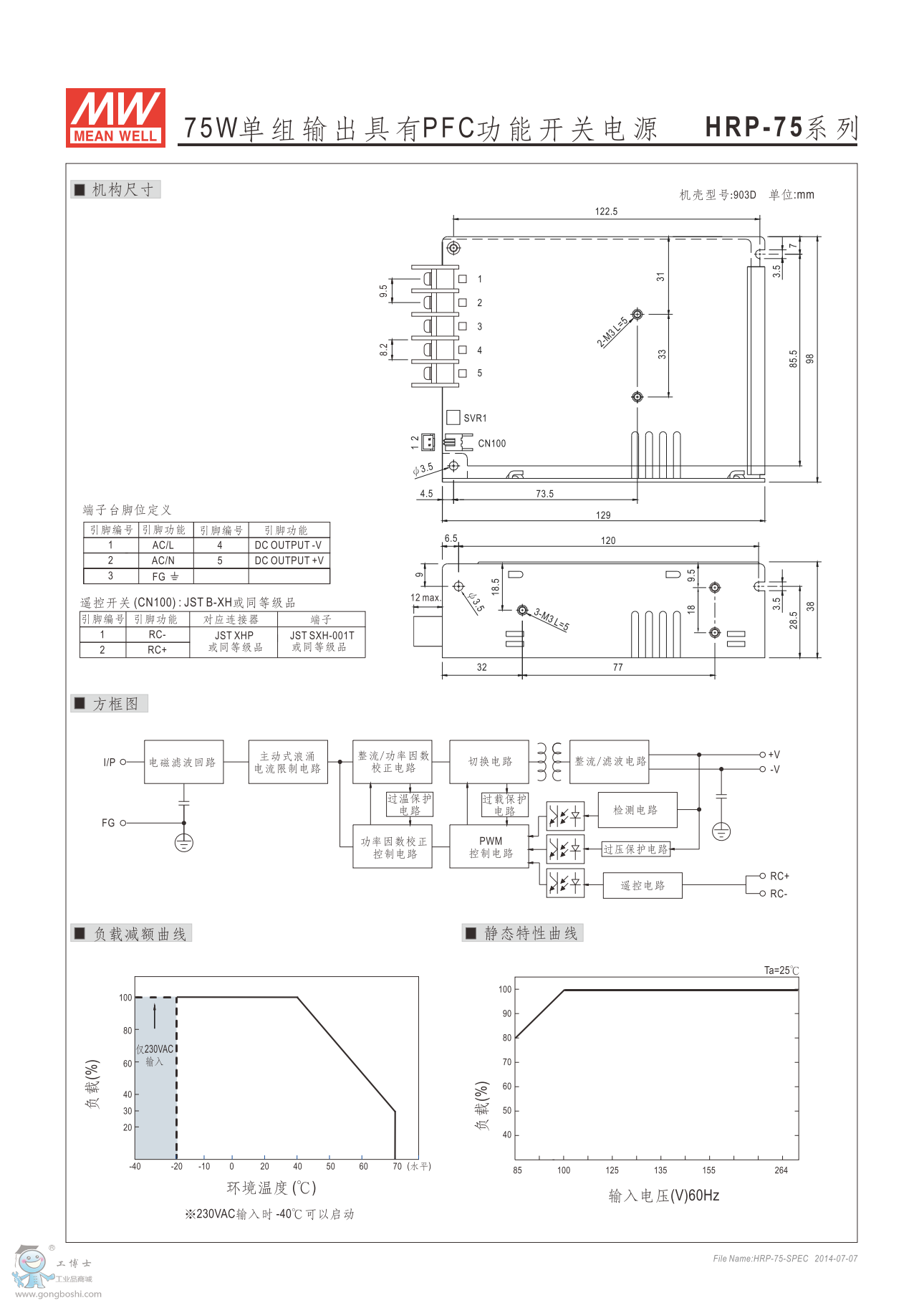 明緯電源HRP-75-12 75W單組輸出有PFC功能 HRP系列