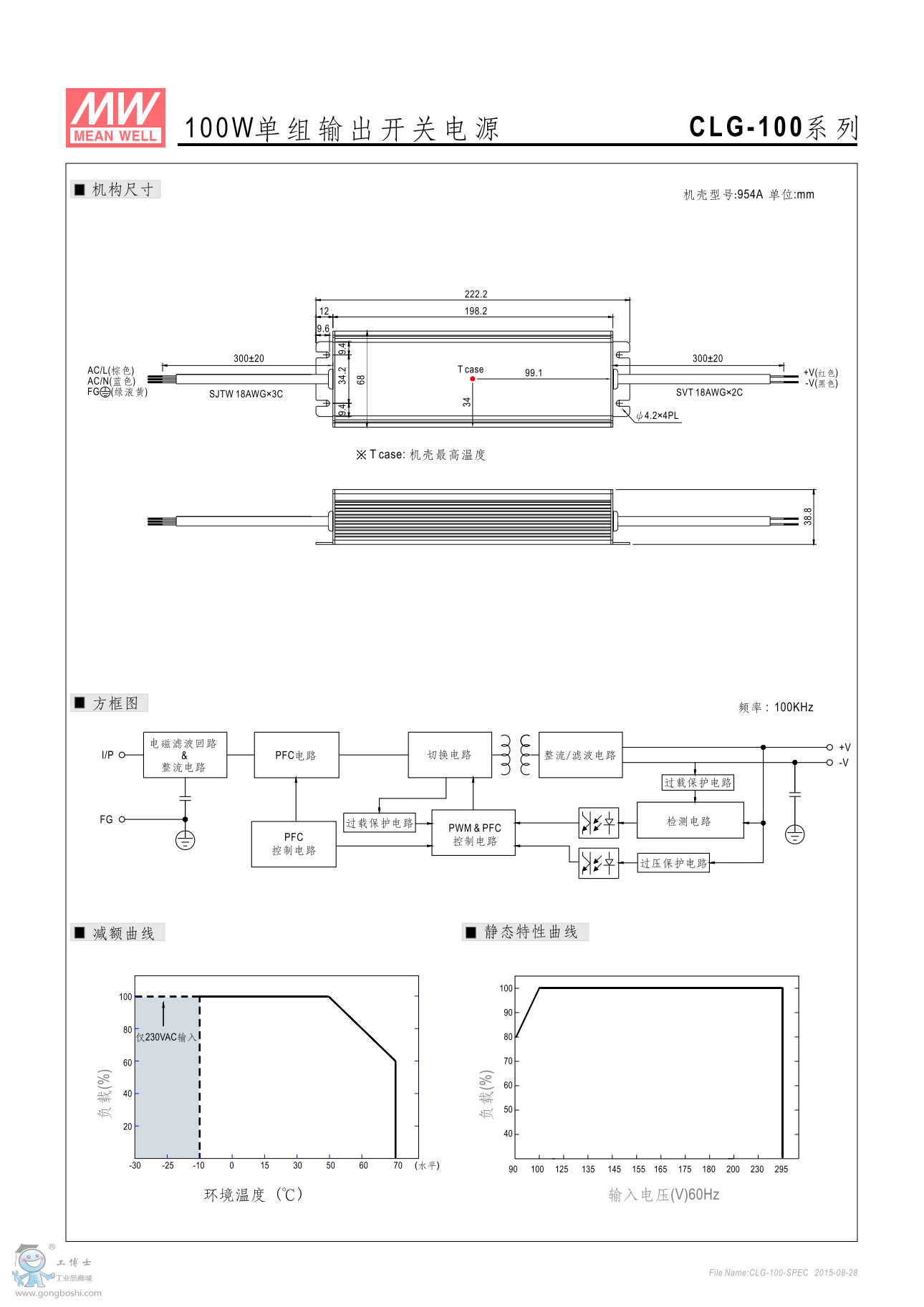 功能特性 • 90~295VAC交流輸入,內建主動式功率因子矯正功能(active PFC)