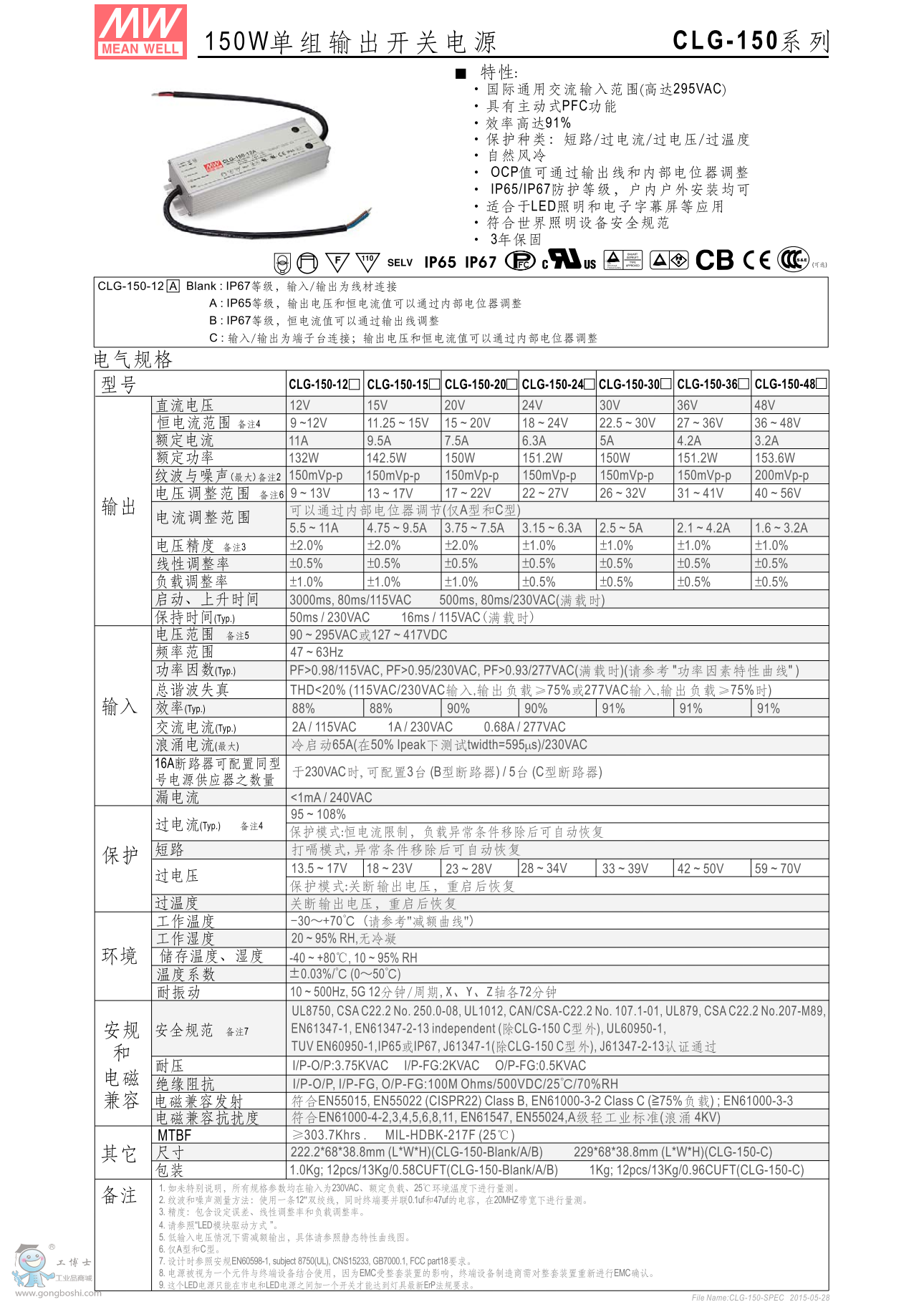 明緯CLG-150-12 150W單組輸出LED開關(guān)電源