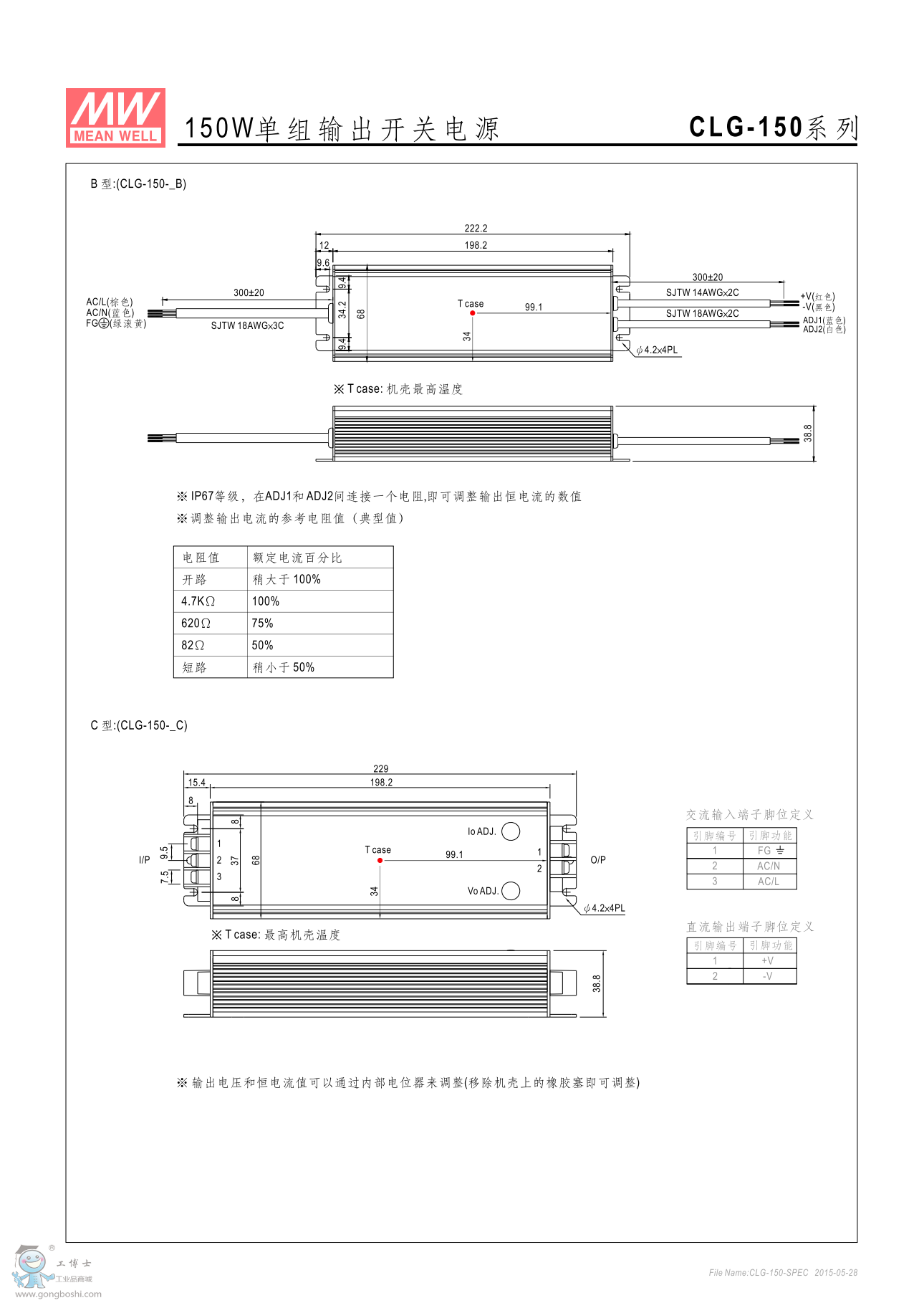 • 使用者可由輸出電纜線或內(nèi)部可變電阻調(diào)整輸出電流(CLG-150)