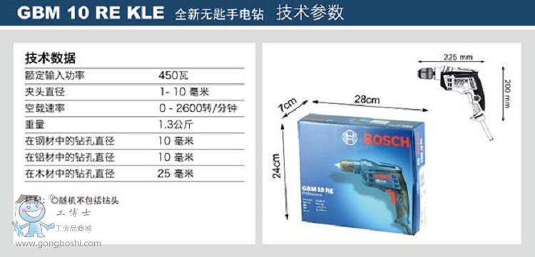 博世(Bosch) GBM10RE KLE 10毫米正反轉(zhuǎn)手電鉆快裝型